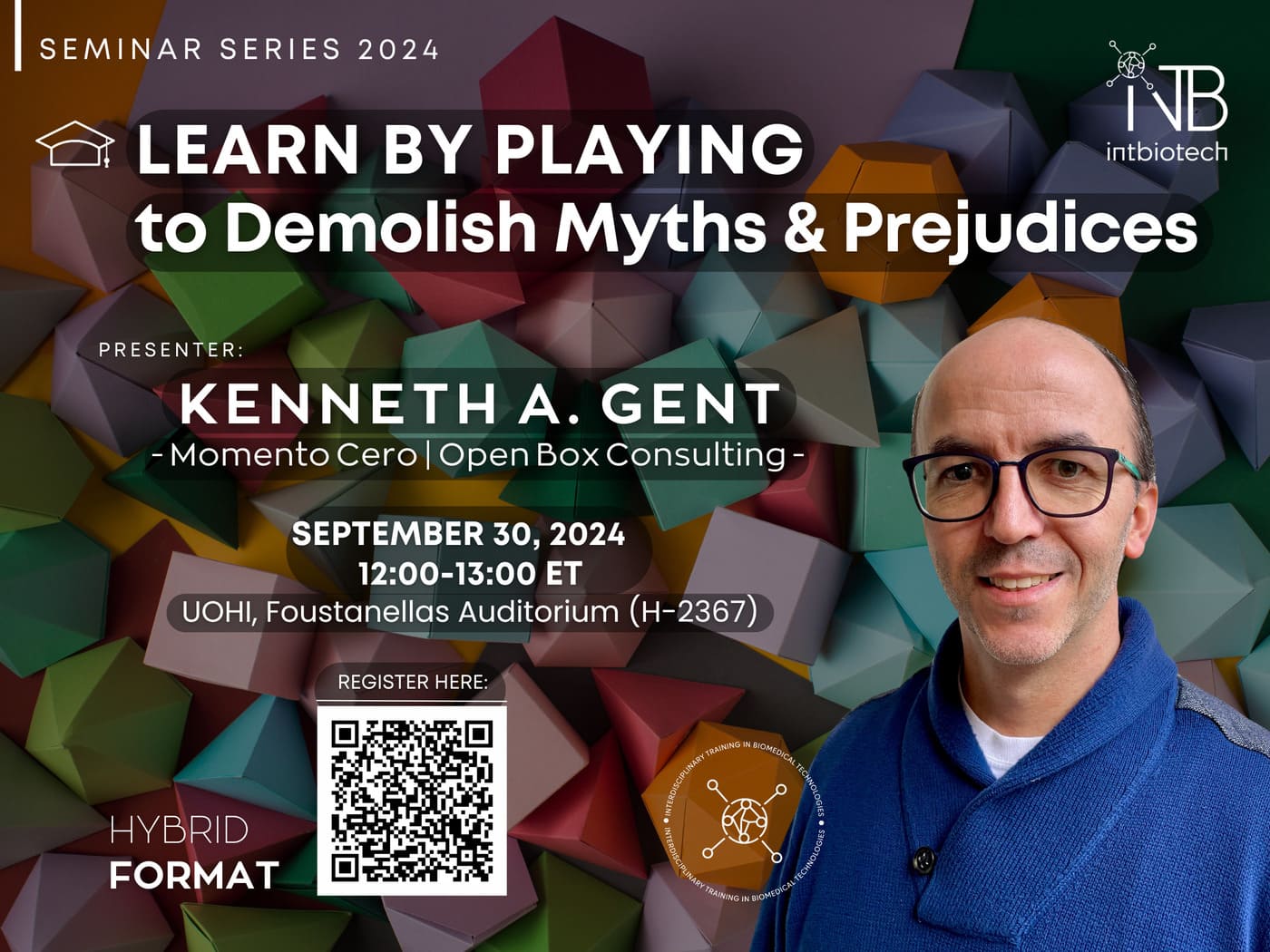 En el marco de las actividades del año 2024 del proyecto INTBIOTECH, interdisciplinary training in biomedical technologies, impulsado por University of Ottawa Heart Institute (Canada), se realizaron una serie de actividades dirigidas a académicos e investigadores con la participación de MSc Kenneth Gent, consultor de Open Box Consulting y cofundador de Momento Cero.